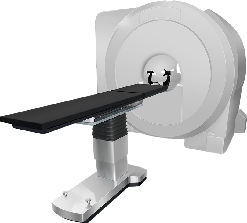 MRI guided into position for intraoperative scans while patient remains stable. MR-Compatible neurosurgical table, MR-Compatible Cranial Stabilization System, and RF Shielded room serve to protect image quality from artifacts.